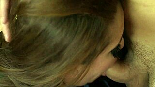 In the bathroom, a curvy beauty gives an epic blowjob with cum