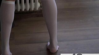 Chica tímida de 18+ con ano apretado ESTIRADO por verga monstruosa en calcetines. Sus pezones se endurecen en el anal intenso
