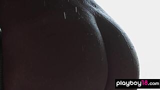 redhead gymnast slips into a steamy shower, teasing with acrobatic moves and deep passion.