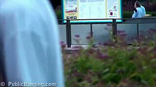 Curvy milf's pussy gets covered in cum on the streets