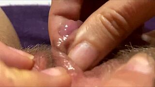 Closeup wet orgasm with big clit play