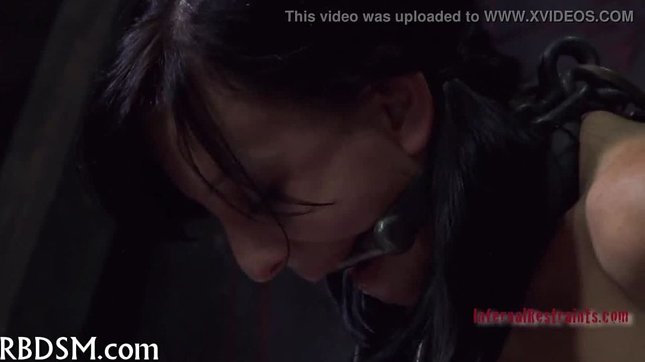 Suspended brunette's pussy toyed intensely