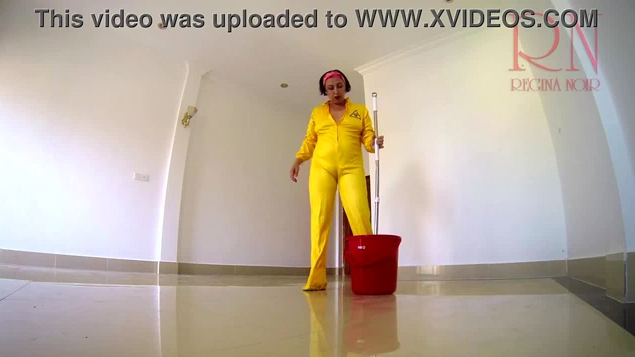 regina noir stretches seductively in transparent red leotard at gym