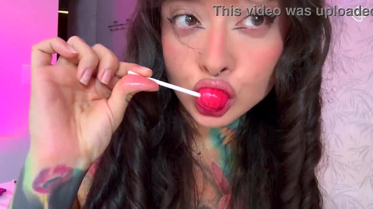 cute girl licks lollipop then engages in playful activities